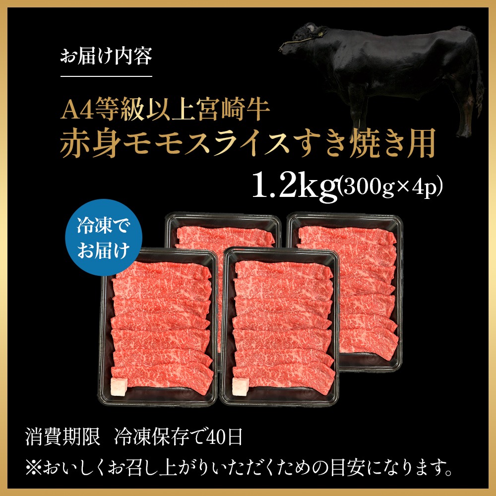 宮崎県西ノ原牧場・A4等級以上宮崎牛赤身すき焼きモモ 1.2kg(国産 牛肉 肉 宮崎牛 黒毛和牛 お肉 すき焼き なかにし和牛 焼肉 人気 モモ スライス )