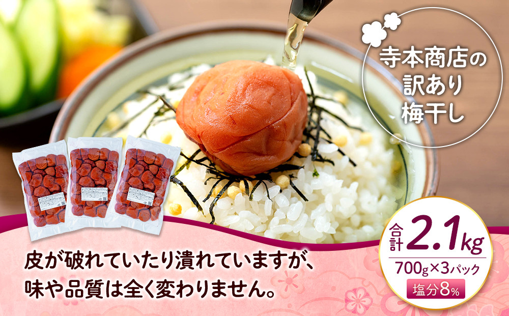 - 訳ありつぶれ梅干し しそ 700g×3パック 合計2.1kg 塩分 8% 304018_CS003