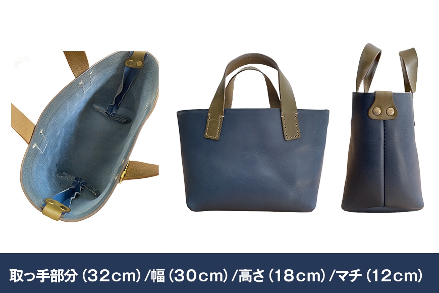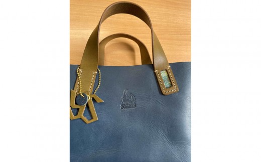 レザートートバッグ(ブルー)浦添市限定ヤクルトスワローズ つば九郎刻印入り