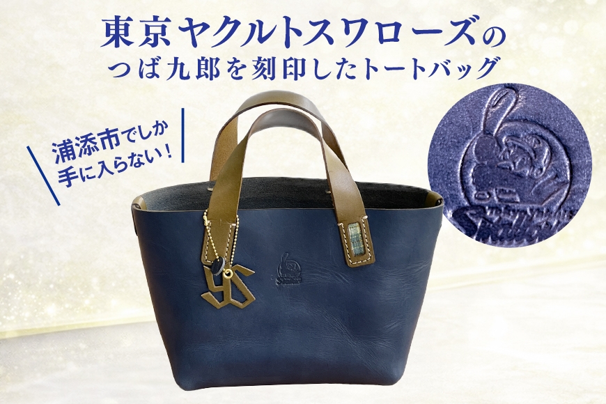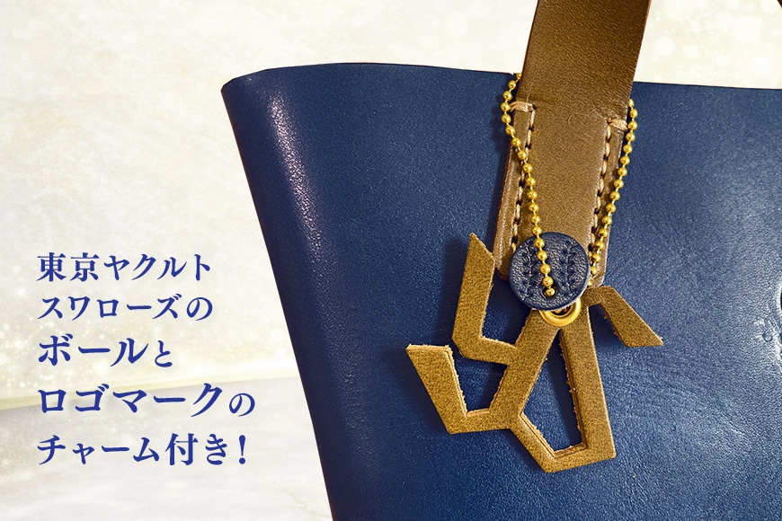 - レザートートバッグ(ブルー)浦添市限定ヤクルトスワローズ つば九郎刻印入り