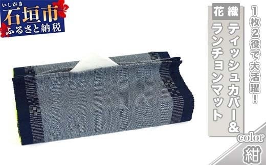 - 花織 1枚2役(ティッシュカバー&ランチョンマット)紺 AI-37