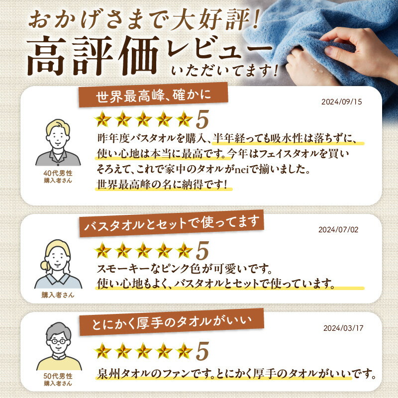 - 【ふるさと納税】世界最高峰 タオル nei フェイスタオル 3枚組 選べる6色 グレー / ホワイト / ブルー / ブラウン / グリーン / スモーキーピンク 天然素材 綿 100% 泉州タオル 泉佐野市 送料無料 ※ 厚手 パイル 刺繍 吸水力 上質 柔らかい 国産 単色 ホテル仕様