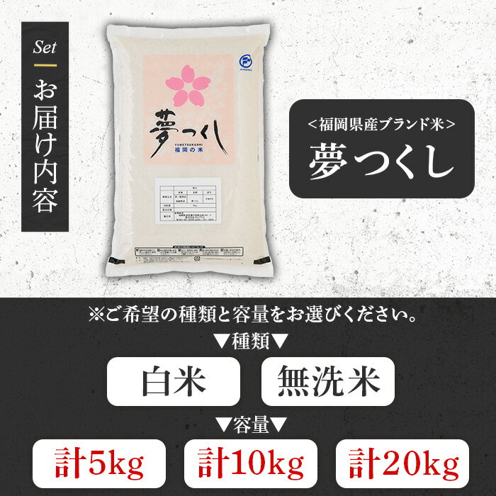 【ふるさと納税】<容量選べる>福岡県産ブランド米 夢つくし(5kg~20kg) 白米 無洗米 米 お米 おこめ ごはん ゆめつくし ご飯 常温 福岡県産 ブランド米 常温 常温保存 5kg 10kg 20kg おにぎり おむすび お弁当 ライス【朝ごはん本舗】