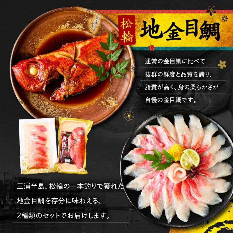 - 【ふるさと納税】 極上 松輪 地金目鯛 お刺身 しゃぶしゃぶ 煮付け セット 金目鯛 キンメダイ きんめだい 鮮魚 刺身 海鮮 魚 お魚 プレミアム 地魚 海産物 料亭の味 簡単 便利 冷凍 惣菜 希少品 贈答用 松輪 ふるさと納税 神奈川 三浦市 ランキング プレゼント ギフト