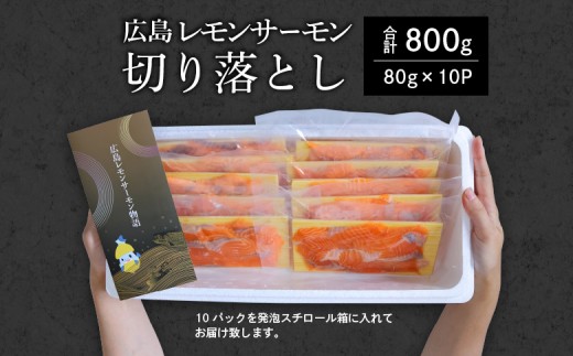 国産サーモン 切り落とし 800g (80g×10P) 小分け 広島レモンサーモン|国産 冷凍 刺身 切落し 広島県産 ふるさと納税 特産品 グルメ 鮭 サーモン レモンサーモン 魚 高級 広島 ギフト [1946]