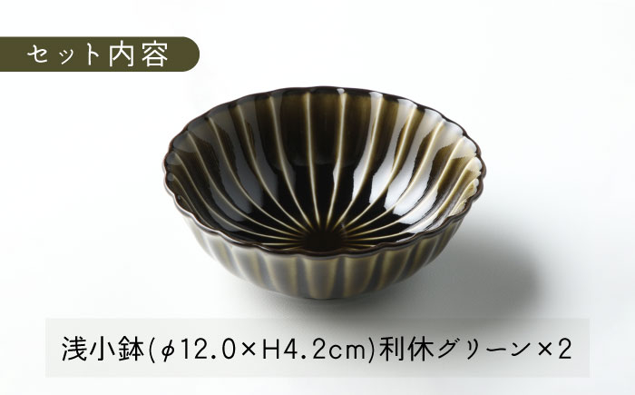 - 【美濃焼】ぎやまん陶 浅小鉢 ペアセット 利休グリーン【カネコ小兵製陶所】【TOKI MINOYAKI返礼品】 食器 鉢 ボウル [MBD121]