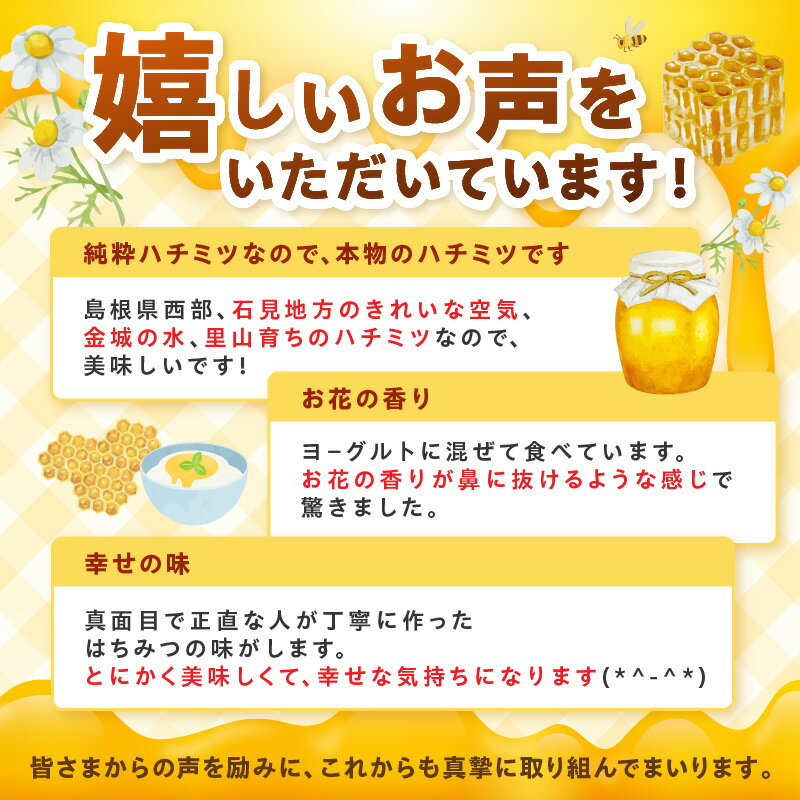 【ふるさと納税】水のきれいな浜田市金城町産「いわみの里山 純粋はちみつ」500g×2本 蜂蜜 国産 百花蜜 純粋 【184_1904】