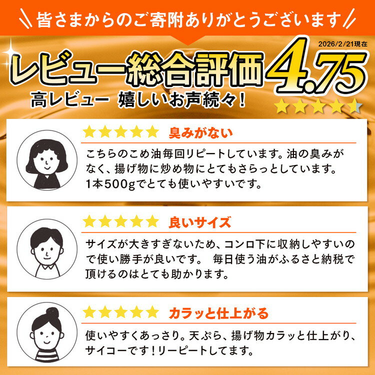 - 【ふるさと納税】【選べる本数】【国産】大人気!こめ油 500g | 有田マルシェ 油 こめ油 米油 揚げ物 天ぷら オイル 米 コメ油 築野食品 お米 こめ こめあぶら 500g 炒め物 揚げ物 ギフト 贈答 贈答用 お中元