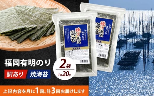 - 【全3回定期便】【訳あり】福岡有明のり 焼海苔 20g×2袋《築上町》【株式会社木村食品(千代海苔株式会社)】海苔 のり ノリ おかず ごはん [ABEI033]