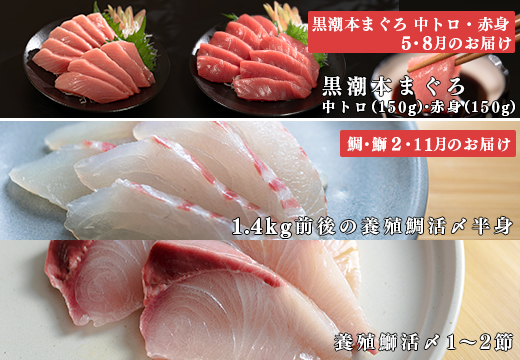 【定期便 4回】本マグロ・タイ・ブリ お刺身堪能セット