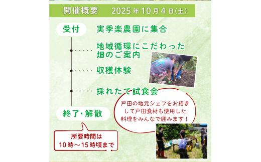 - さつまいも堀り & 採れたて試食会 体験 地元シェフ と 採れたて 野菜 をみんなで食べよう こども 親子 沼津 戸田 実季楽農園 【海と山に育まれた 戸田 の恵を掘り起こそう】 収穫 収穫体験 大人 2名 子ども 1名 さつまいも 掘り 体験 試食 観光 静岡 沼津