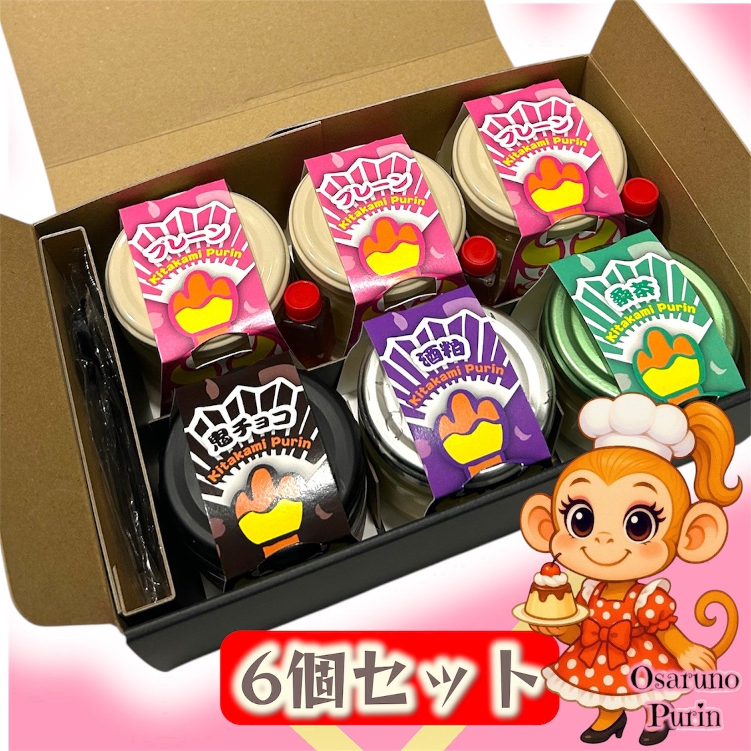 きたかみプリン6個セット(きたかみプリン4種+おまかせ2種)スイーツ お菓子 プリン ご当地 グルメ 土産 デザート 国産 冷蔵 鬼剣舞 モチーフ 卵 たまご プレゼント 贈答 贈り物 岩手県 北上市 D0513 Osaruno Purin おさるのプリン