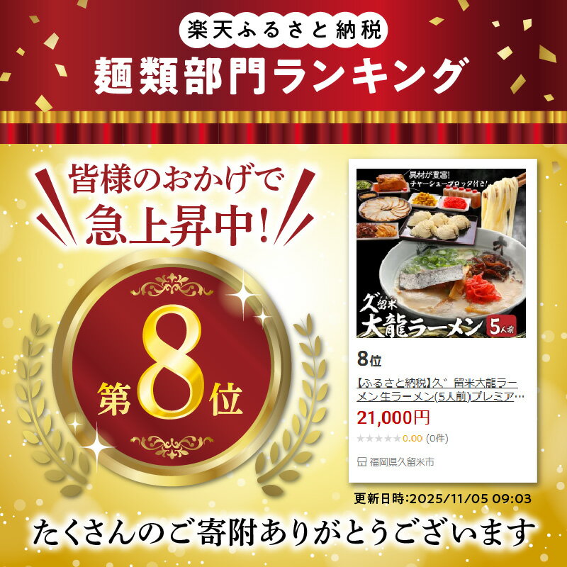 【ふるさと納税】久゛留米大龍ラーメン 生ラーメン(5人前)プレミアムセット 老舗 自家製 ご当地 生ラーメンセット 生麺 とんこつ チャーシュー こだわりの麺 国産豚 スープ 具材つき プレミアム5人前 発祥の地 冷蔵 お土産 久留米 福岡 九州 食品 送料無料