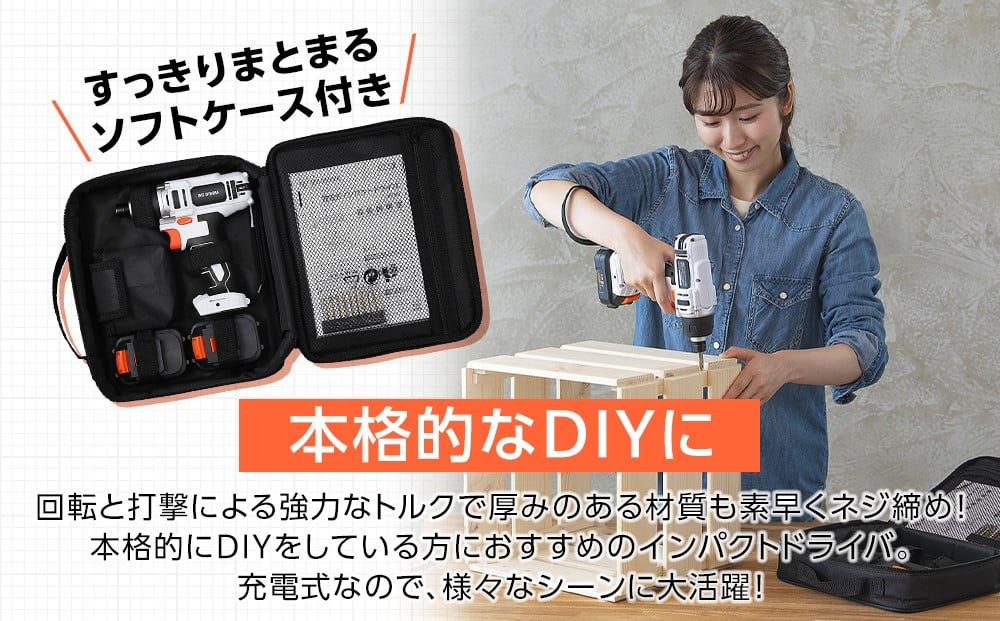 - インパクトドライバー 10.8V 充電式 ソフトケース バッテリー2個付き 充電式インパクトドライバ アイリスオーヤマ 家電 電化製品 ビット10本 バッテリー2個付き コードレス 軽量 JID80-C