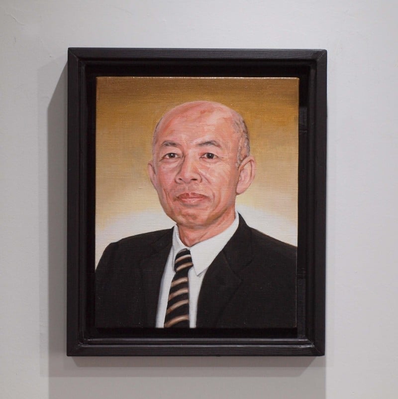 ご遺影を高級感のある油絵で細密に描きます(33×24cm・背景あり)