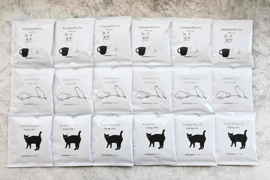 - ドリップバッグ コーヒー アソートセット 3種 18個セット(18杯分) [自家焙煎珈琲豆シロネコ 静岡県 吉田町 22424646] ドリップバッグ コーヒー 珈琲 coffee コーヒー粉 ドリップ 粉 ドリップパック ブレンド エチオピア アソート セット