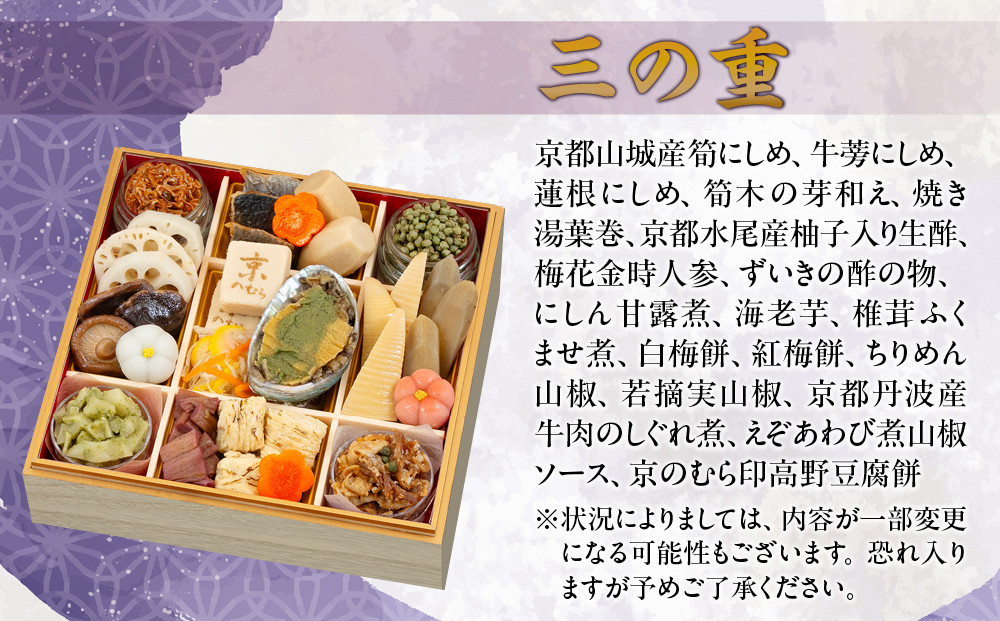 【京のむら】京風三段重 4~5人前|京都 老舗 本格和風おせち 人気おせち[ 京都 老舗 和風おせち三段 4人 5人 グルメ 京料理 人気 おすすめ 2026 正月 お祝いお取り寄せ 通販 送料無料 年内発送 ふるさと納税 ] 261009_A-AA535