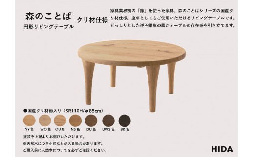 【飛騨の家具】HIDA 森のことば クリ材仕様 円形リビングテーブル φ85(SR110H)|家具 机 テーブル ちゃぶ台 リビング 木製 国産 新生活 インテリア 飛騨家具 飛騨産業 CG335
