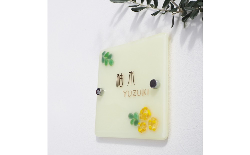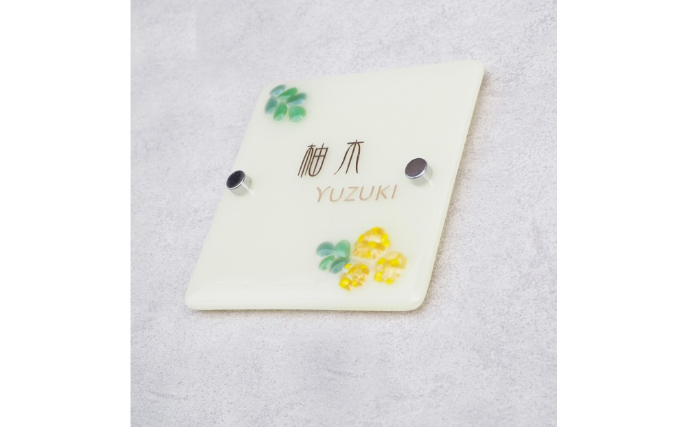 - ナチュラルガラス表札(ミモザ)