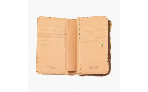 二つ折り財布 牛革 ミドルサイズ ラウンドジップ Dカン付 レザーウォレット