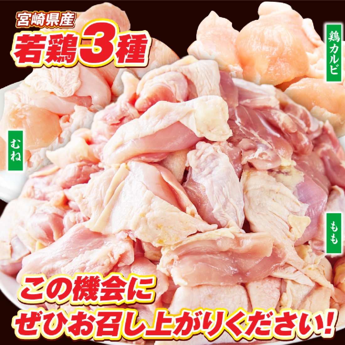 【カット済み】宮崎県産若鶏もも肉 むね肉 鶏カルビ 計2.7kg 国産 鶏肉 若鶏 もも モモ むね ムネ 小分け カット済み 冷凍 セット