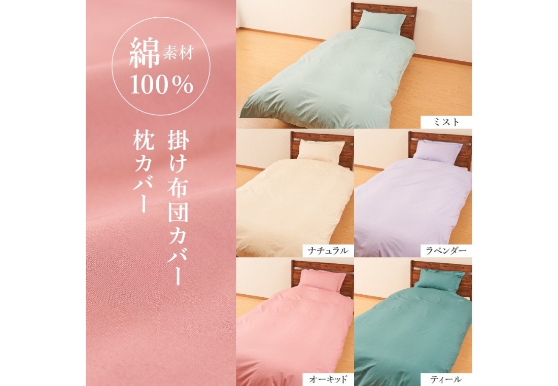 - Sybilla(シビラ)刺繍入りコットンプレーン 掛け布団カバー 枕カバーセット 選べる5色【ミスト/ナチュラル/ラベンダー/オーキッド/ティール】掛けカバー ピーローケース 寝具 日本製 国産 山梨 富士吉田