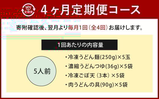 - 【定期便4カ月】 資さん肉ごぼ天うどん(5人前)×4回 合計20人前 肉うどん ごぼう天うどん