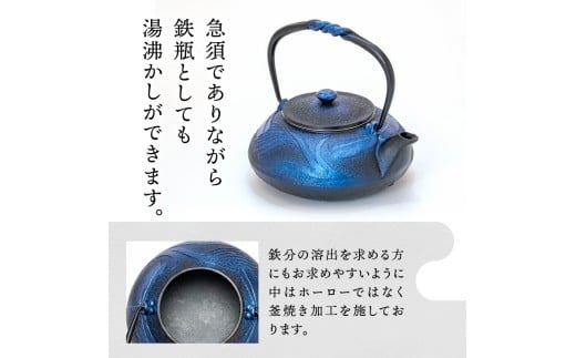 南部鉄器 鉄瓶 蜻蛉 瑠璃色 0.5L IH調理器 伝統工芸品 縁起物 釜焼き やかん ケトル 急須 茶こし 湯沸かし キッチン用品 食器 日用品 雑貨 [AK040]