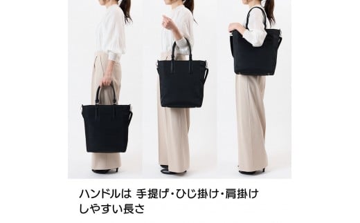 倉敷産帆布×本革 2way トートバッグタグ(黒×ブラウン)◇