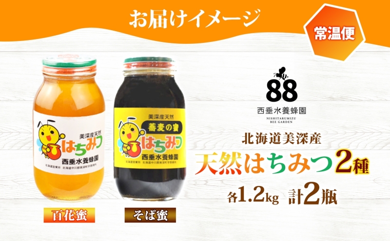 - 【 ふるさと納税 】北海道美深産 天然はちみつ 百花蜜・そば蜜セット 計2.4kg 1.2kg×各1瓶 百花蜜 そば蜜 ソバ蜜 蕎麦蜜 クローバー アザミ シナ そばの花 はちみつ 蜂蜜 ハチミツ 蜜蜂 みつばち ミツバチ 純粋 国産 お取り寄せ 送料無料 北海道 美深町