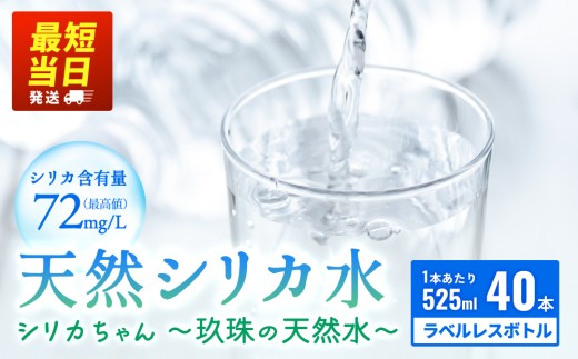 - 天然 シリカ 水 525ml × 40本 <シリカちゃん〜玖珠の天然水〜> ラベルレス 天然水 シリカ水 ミネラルウォーター 大分県 国産 天然シリカ 水 シリカ水 ミネラルウォーター 国産 保存可能 水 ペットボトル 長期保存水 備蓄水 備蓄用 非常災害備蓄用 災害 避難用品 防災 SDGs