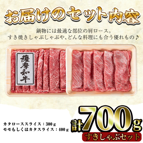 No.419 薩摩和牛のすきしゃぶセット(合計700g・肩ローススライス300g、モモもしくはカタスライス400g)国産 牛肉 スライス 数量限定 すき焼き しゃぶしゃぶ セット 冷凍【さつま屋産業】