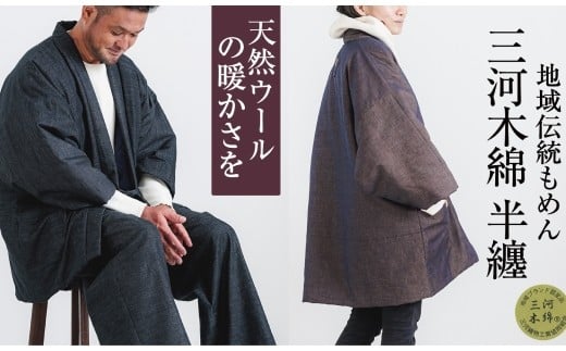 【G0675】三河木綿 半纏:配送情報備考 M / ブラック