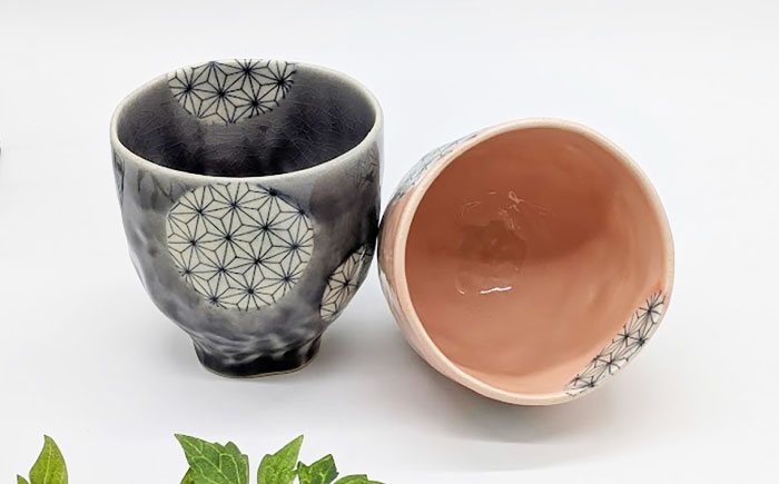 【瀬戸焼】 麻ノ葉ペア湯呑セット (パープル&ピンク) 【山長陶苑】 / 瀬戸焼 湯呑 ペア 贈り物 [BBBH037]
