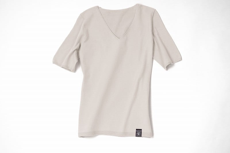 NUONE海島綿Vネック半袖プルオーバー スティールグレー