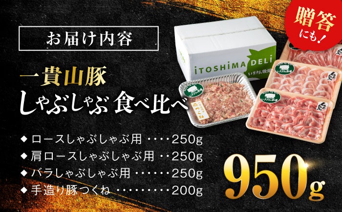 - 一貴山豚 しゃぶしゃぶ 食べ比べセット スライス3種750g+つくね200g 糸島市 / いきさん牧場 豚肉 セット [AGB061] 豚しゃぶ しゃぶしゃぶ 肩ロース 豚バラ 冷凍 鍋 豚肉 セット しゃぶしゃぶ