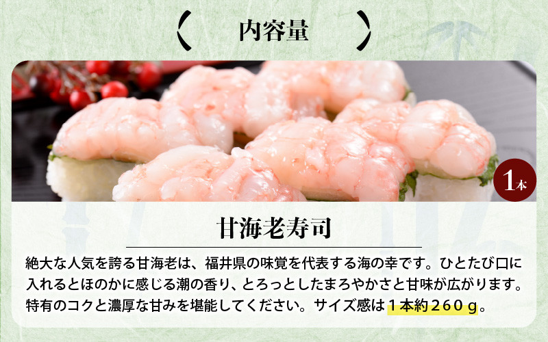 - 甘海老の甘みとコクがたまらない 「甘海老寿司」 1本 約260g ~家族が喜ぶ手土産~【名物 プリプリ 濃厚 特別栽培米使用 すし こしひかり 贈答 ギフト お土産 大人気】 [A-0514]