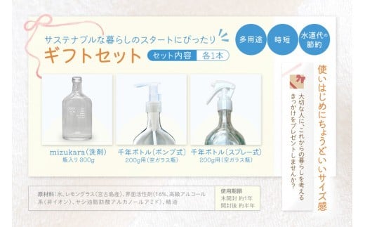 MR02 mizukara ギフトBOX(洗剤+ガラスボトル)