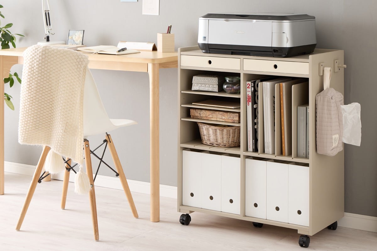 - マルチワゴン「ルミエール」グレージュ|オフィス 書類収納 収納ケース 棚 収納棚 日本製 組立不要 リビング 書斎 オフィス [0954]