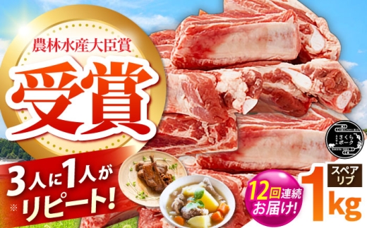 - 【全12回定期便】ええやんさくらポーク 小林ファーム 豚肉 スペアリブ 1kg /亀山市/小林ファーム [AMAB043]