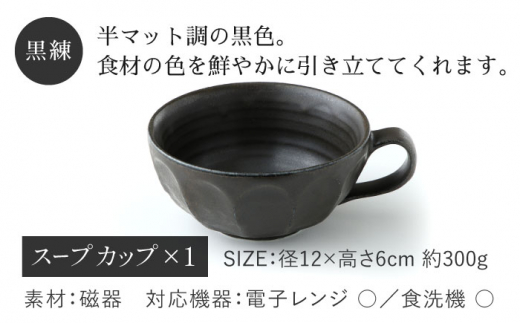 - 【美濃焼】リンカ スープカップ&ソーサー 黒練【カネコ小兵製陶所】【TOKI MINOYAKI返礼品】食器 マグカップ 皿 [MBD102]