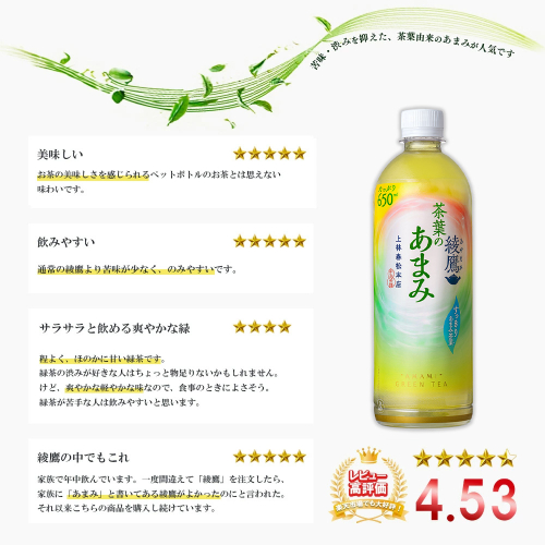 - 【5か月連続お届け】綾鷹茶葉のあまみ 650ml PET×24本 コカコーラ 綾鷹 茶 お茶 カフェイン ペットボトル 常備 備蓄 定期便 蔵王 【04301-0907】