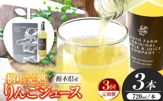 - 【定期便3回】栃木県矢板市産 樹上完熟100%りんごジュース 720ml×3本入 | 林檎 リンゴ 果汁100% 産地直送 (毎月お届け)