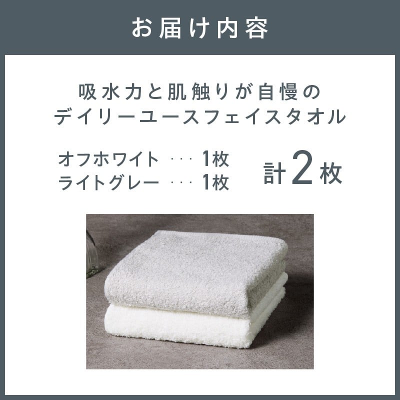 - 【泉州タオル】吸水力と肌触りが自慢のデイリーユースフェイスタオル オフホワイト・ライトグレー 2枚【配送不可地域:北海道・沖縄・離島】【039E-097】