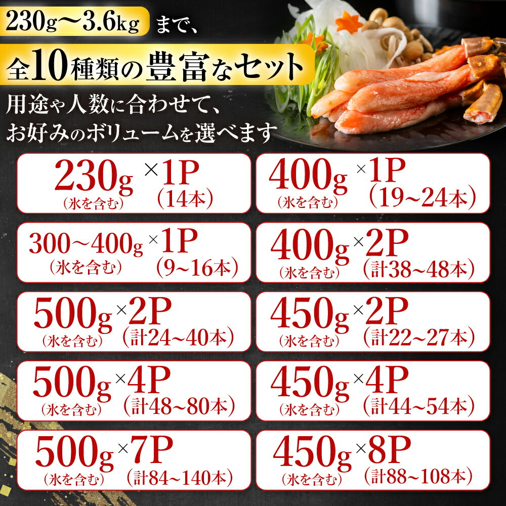 - 【ふるさと納税】 お刺身可!ずわいがに棒肉ポーション 選べる 230g ~ 3.6kg ズワイガニ ズワイ ずわい ズワイ蟹 ずわい蟹 かに カニ 蟹 お取り寄せ グルメ 海鮮 刺身 かにしゃぶ 雑炊 天ぷら 北海道 根室市 ふるさと納税
