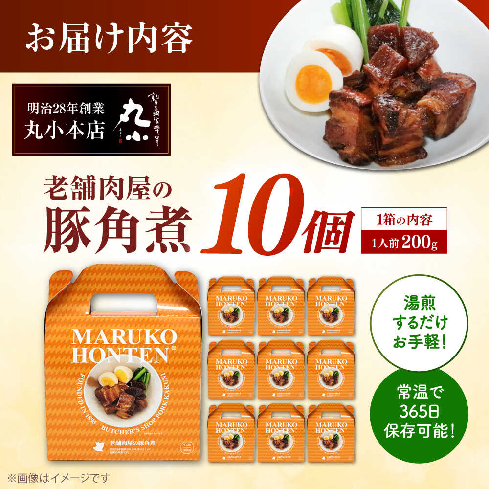 【ふるさと納税】丸小本店 老舗肉屋の自慢の国産豚角煮 1人前200g×10個セット レトルト 豚肉 レンジ対応 豚角煮 時短 簡単 柔らかい 味付け 醤油 ご飯によく合う 豚 豚肉 にく 肉 お肉 お惣菜 おかず おつまみ 恵那市 / テンポイント[AUFN022]