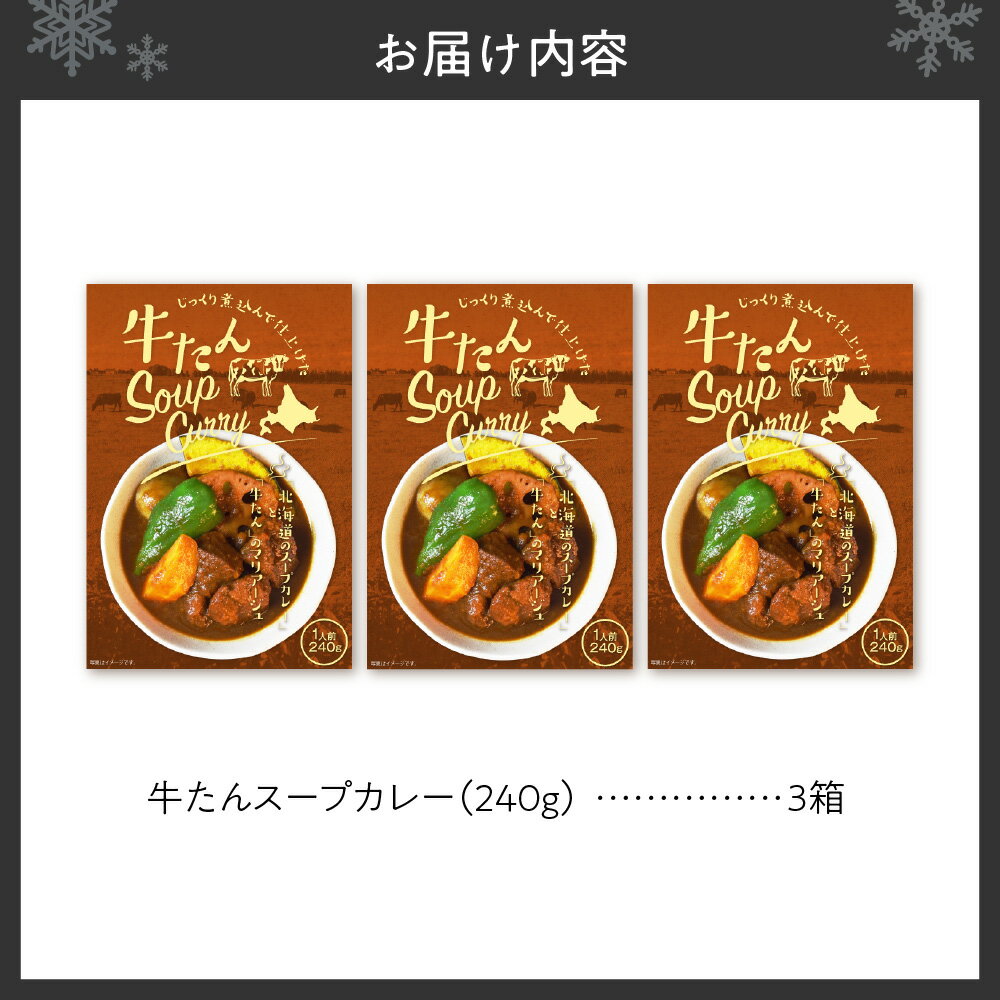 【ふるさと納税】 牛たん スープカレー 240g×3箱 セット 牛タン 人参 れんこん カレー スープ ご当地 グルメ 名物 レトルト 大きめ具材 温めるだけ 簡単 本格的 北海道 札幌市