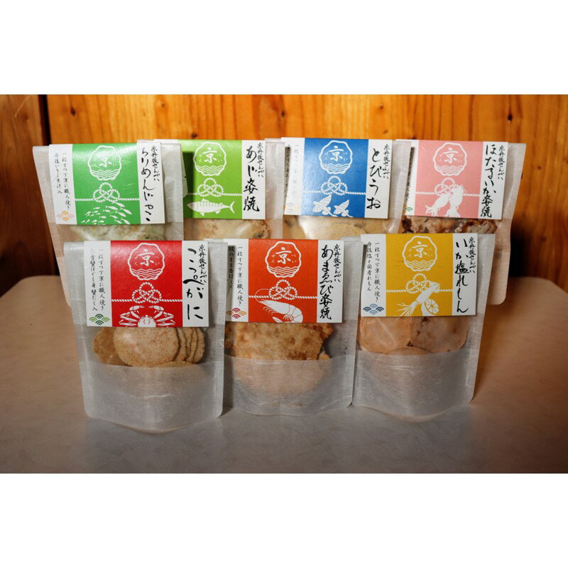 【ふるさと納税】京丹後海鮮せんべい 贅沢7種セット 各1袋 各3袋 セット|蟹・甘海老・ほたるいかなど天然素材の高級煎餅ギフト!