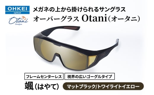 - メガネの上から掛けられるサングラス オーバーグラス「Otani(オータニ)」フレームセンターレス、視界の広いゴーグルタイプ「颯(はやて)」(3)マットブラック/トワイライトイエロー [№5346-1476]