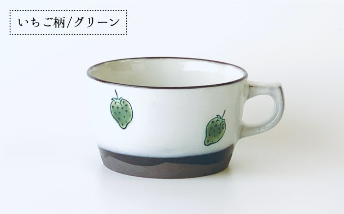 - 食器 皿 【波佐見焼 】スープ マグカップ ペアセット いちご柄(レッド・グリーン) スープカップ 食器 皿 【ROXY・HASAMI】 [SB137]